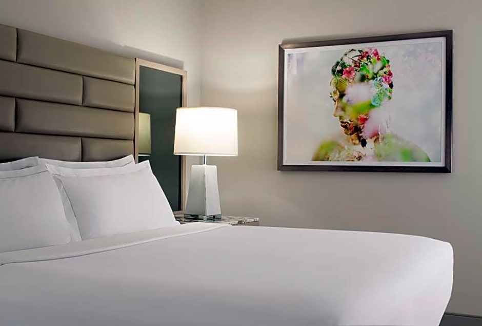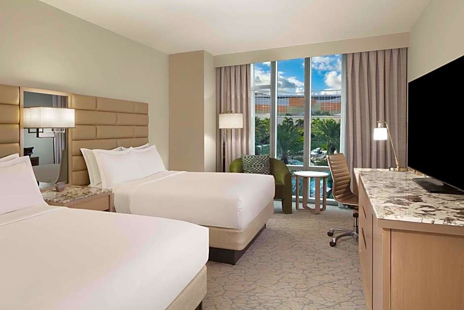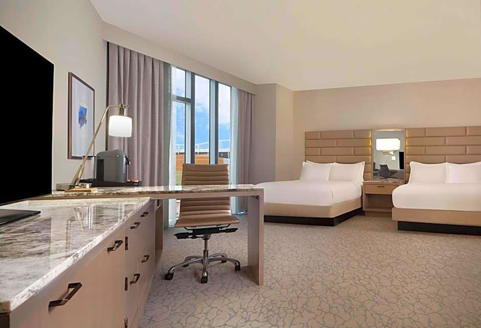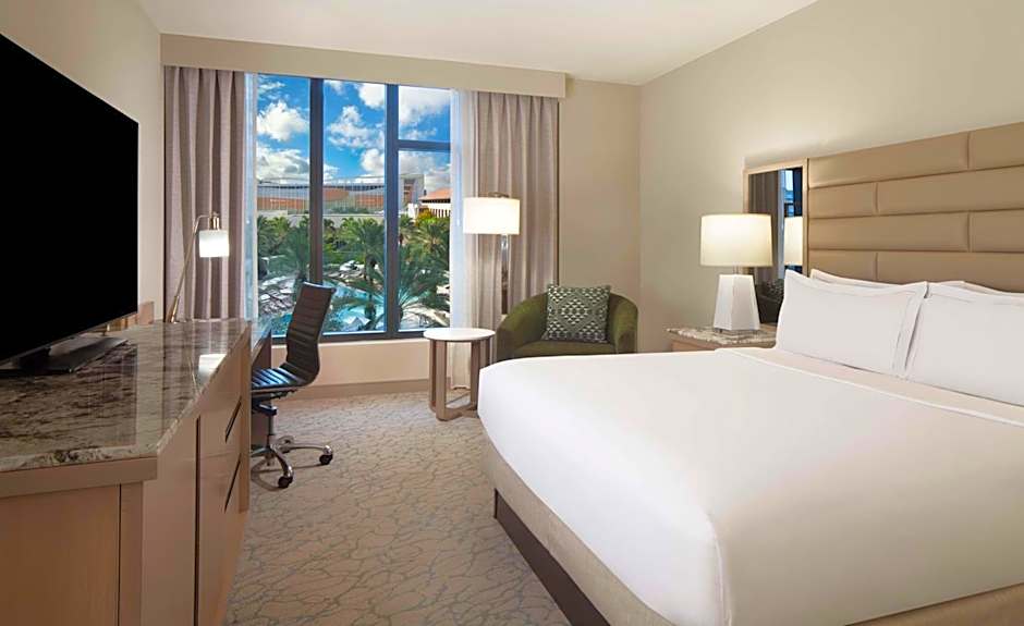 This accessible room features a West Palm Beach city view, Modern-style furnishings, and a small refrigerator. Extras include a 55-inch television.
